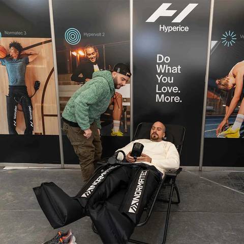 Σε συνεργασία με τον αθλίατρο Χάρη Βαλσαμίδη MD, όσοι επισκεύθηκαν το booth, πήραν συμβουλές ορθής χρήσης των καινοτόμων προϊόντων της Hyperice και συμβουλές για τον επερχόμενο αγώνα.